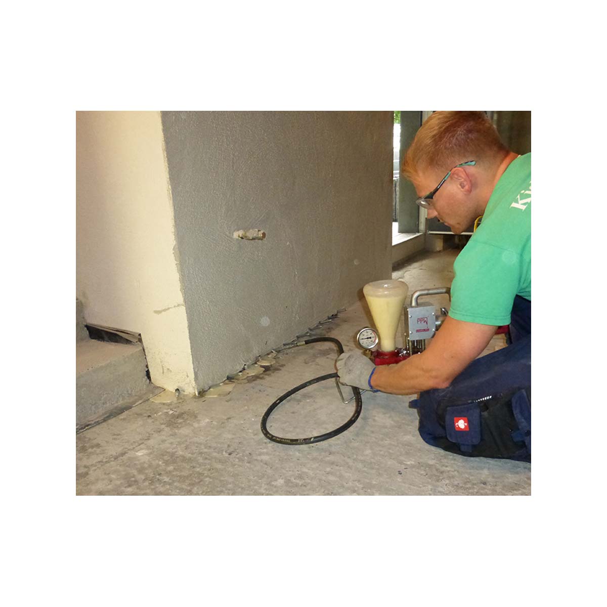 Eine Rissverpressung ist keine Aufgabe für den Heimwerker. Für eine korrekte Durchführung sind eine spezielle Ausbildung, viel Erfahrung und besonderes Werkzeug erforderlich. mh bautenschutz analysiert exakt den Verlauf des Risses und ermittelt so seinen Ausgangspunkt in den Tiefen des Mauerwerks. Mit Hilfe leistungsstarker Bohrgeräte treffen wir punktgenau die Schadstelle, um sie anschließend mit Kunstharz zu verfüllen. Für ein optimales Ergebnis ist für die Rissverpressung ein Druck von 40 - 50 bar erforderlich. Das geht nur mit Spezialwerkzeug. Es stellt aber sicher, dass das Mauerwerk bis in die feinsten Kapillaren und Haarrisse hinein nachhaltig gegen eindringende Feuchtigkeit geschützt ist. Einmal ausgehärtet, dichtet der Kunstharz die Wand nachhaltig gegen jedes stehende und fließende Wasser ab. Selbst eine anliegende Wasserquelle kann so keinen Schaden mehr am Bauwerk anrichten. Dazu ist diese Arbeit sehr sauber: Außer etwas Bohrstaub fällt bei der Rissverpressung keinerlei Schmutz an. Und der lässt sich schon beim Bohren gleich absaugen. Damit ist die Kellerabdichtung durch Rissverpressung eines der saubersten, schnellsten und nachhaltigsten Verfahren, die Sie finden können.